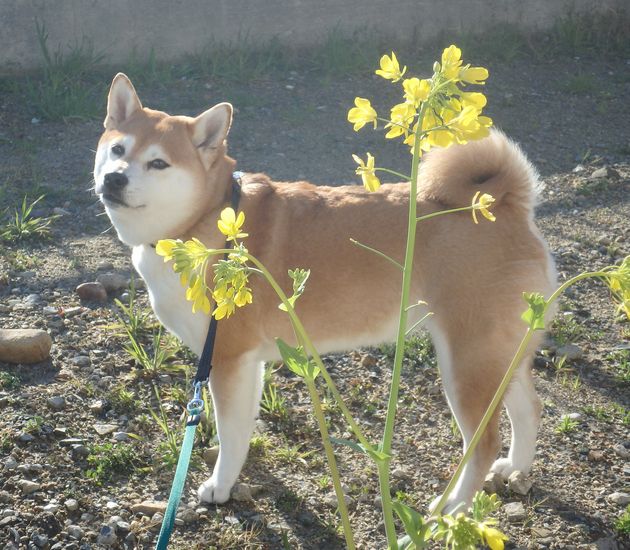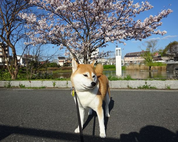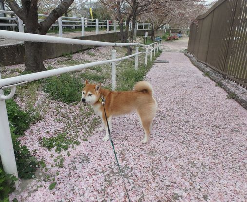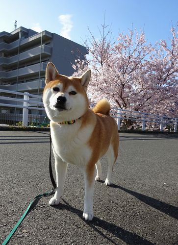 桜をバックに必死て撮影したが、ワンコには桜の美しさが解っているんだかどうだか?