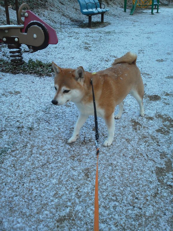 雨のせいか今朝の散歩は思ったより寒くなかった。